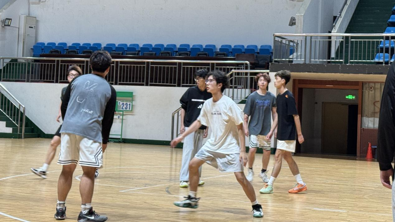 场馆内,2025级音乐新生完成了运球、传球、投篮等热身环节,篮球撞击地板的声音与场边加油声此起彼伏。五位新成员刘卓、王杰杰、谢圣谋、赵誉涵、许茂森在老队员的掌声中加入队伍,队长刘曦未表示:"比赛没有复杂规则,重点是让大家在配合中熟悉彼此。"随后,老队员主动示范投篮动作,新成员积极参与练习,现场氛围轻松热烈。