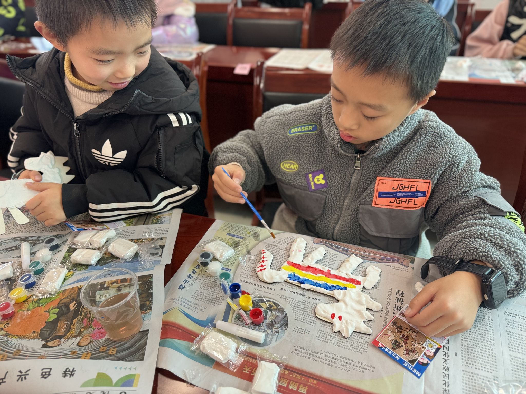 活动伊始,志愿者通过一段手势舞活跃了现场气氛。随后通过生动形象的讲解,向孩子们介绍了元旦的起源、历代习俗演变以及相关诗词典故,带领大家深入了解传统节日的文化内涵。知识竞答环节将气氛推向高潮,“元旦在古代被称为什么?”“‘元’与‘旦’分别代表什么?”等问题一问,孩子们便积极举手、踊跃抢答,他们在互动中巩固了所学知识。粘土作品制作环节,孩子们充满了期待,纷纷开始制作自己心中的小马形象,脸上洋溢着童真的笑容。