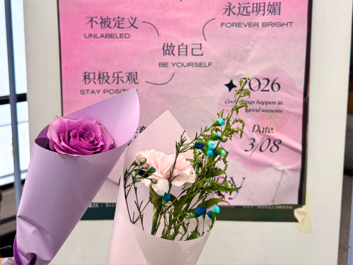 此次活动以温暖仪式感传递学院关怀,舒缓了同学们的日常学习压力,也展现了音乐学院女生自信明媚、温润如歌的青春风采。花香弥漫校园,为春日增添了一抹浪漫而温情的艺术气息。