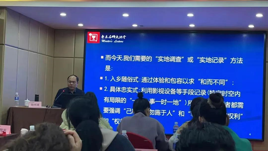 11月29日,赵书峰教授受湖南省文旅厅邀请为“艰边地区文化工作培训班”做“民族音乐学及田野调查”主题授课。此次会议由湖南省文化和旅游厅主办,参与课程的人员为湖南省边远地区和基层一线文化工作者。