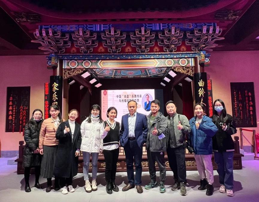 2021年11月17日,长沙市非物质文化遗产保护中心邀请湖南省“芙蓉学者”特聘教授、湖南师范大学音乐学院博士生导师赵书峰教授,前往长沙市非物质文化遗产展示馆举行与非物质文化遗产专题讲座——《中国“非遗”乐舞传承与传播问题的反思》。此次讲座由长沙市非物质文化中心举办,并将录制为线上课程供大众学习。讲座从中国”非遗“乐舞传承中所出现的问题进行多角度、多层次的探讨,并对其进行反思且提出相关的解决方案。讲座最后,赵书峰教授对在座同学提出的问题进行了解答。