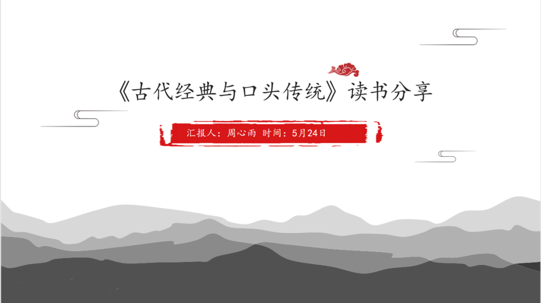2022年5月17日星期二晚上6:30-9:30,“中心”开展“口头诗学与表演理论”系列读书会第三期。5月,“中心”将针对“口头诗学与表演理论”开展一系列的读书会,选取经典书目进行读书分享。本期采用了线上与线下相结合的方式进行,在本期中进行分享的是2021级民族音乐学硕士研究生周心雨和2020级民族音乐学硕士研究生李静,分享书目为《古代经典与口头传统》(尹虎彬著),《作为表演的口头艺术》([美]理查德·鲍曼著)。