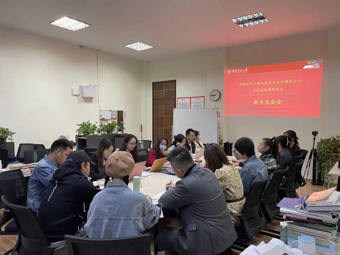 2022年10月11日晚上六点,湖南师范大学“中国南方少数民族音乐文化研究中心”举行了2022级硕士、博士研究生新生见面会及学术汇报活动。会议由“中心”主任赵书峰教授主持召开,“中心”成员全体参会,会议采取线上、线下相结合的方式举行。