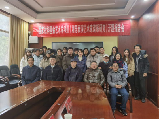 2024年1月19日,湖南师范大学音乐学院德乐楼二楼会议室座无虚席,一场备受瞩目的《湘昆表演艺术家谱系研究》开题报告会在此隆重举行。此次会议汇聚了夏雄军、杨和平、陈乃良、段乔生、邓连平等多位在艺术学领域具有深厚造诣的专家学者,共同就湘昆表演艺术家谱系研究这一课题展开深入探讨和交流。