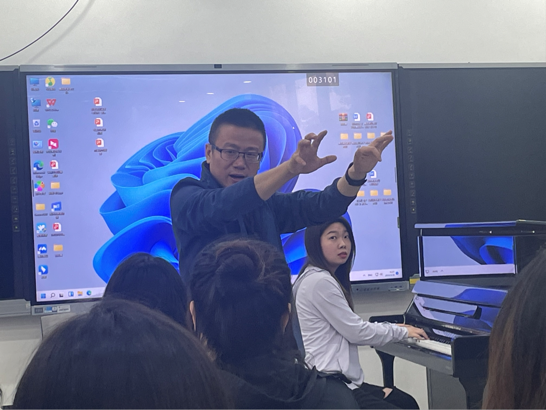 在练习钢琴即兴方面,张征教授提出了宝贵的建议。他强调,练习过程中一定要注重指法的训练。为了让学生们更直观地理解这一点,他亲自示范并指导学生们进行练习。多位学生上台实践后,都深切感受到了指法训练对于钢琴即兴演奏的重要性。在谈到音乐教育与音乐表演的区别时,张征教授提出了一个引人深思的观点。他强调,学音乐表演专业的学生可以专注于自己的演奏技巧,而无需过多关注与他人的互动;但学音乐教育的学生则需要在今后的讲课过程中,时刻关注学生的反应和表现,以便更好地指导他们。这一观点让在场的音乐教育专业学生深感责任重大,也让他们对于未来的教学工作充满了期待和信心。