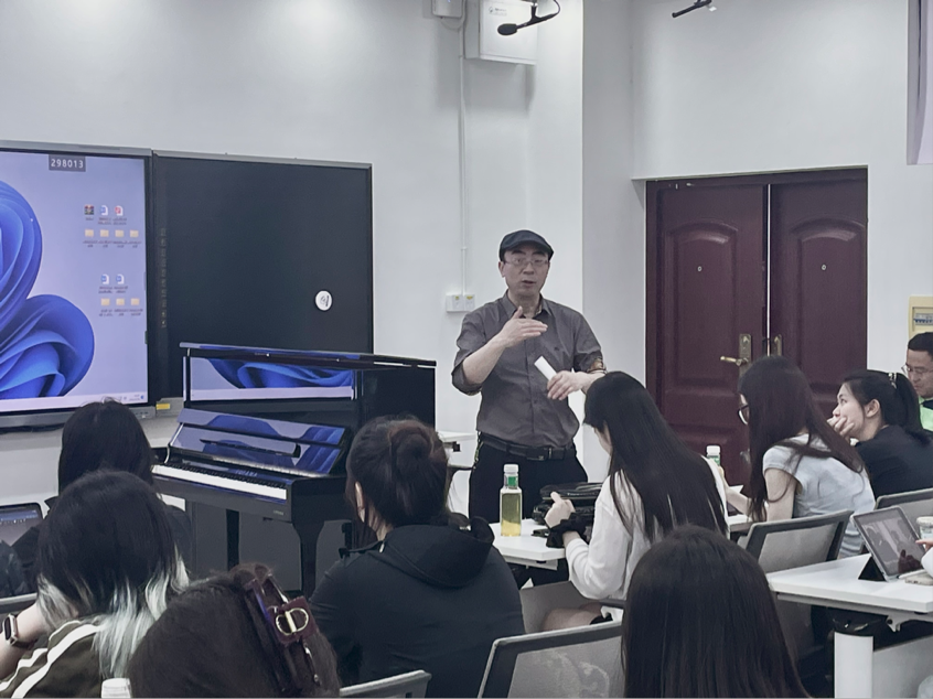 (通讯员:曾心怡 马竹君)2024年5月16日下午14.30,中央音乐学院音乐教育学院院长、中央音乐学院教授、著名作曲家张征教授受湖南师范大学音乐学院之邀,在音乐学院和乐楼开展了以“音乐与钢琴即兴”为主题的讲座。本次讲座吸引了音乐学院众多研究生和本科生共同探讨音乐的魅力。讲座开始前,夏雄军副院长走上台,对张征教授进行了简短的介绍,并对他表示了热烈的欢迎。夏副院长的话语中充满了对张征教授的敬意,也表达了对本次讲座的期待。