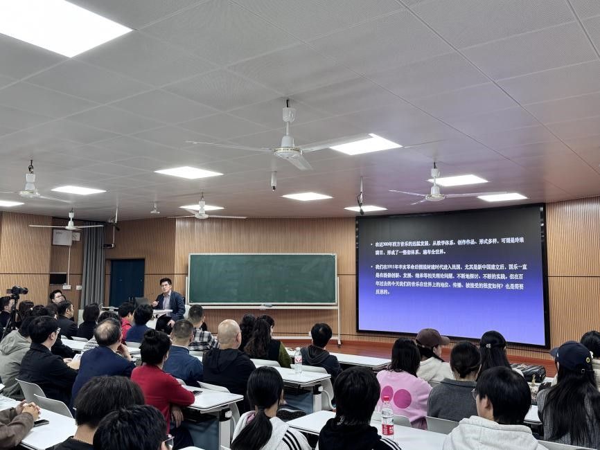 (通讯员:廖博洋 拍摄:沈佳玲)2024年10月21日下午15:00,著名的演奏家、作曲家、教育家张维良教授受湖南师范大学音乐学院之邀,在和乐楼208为音乐学院全体师生带来了一场专业、精彩的《中国笛箫当代发展趋势》讲座,张维良教授以其丰富的学术经验和专业知识,以巴黎笛箫与竖琴音乐会为例,通过实况视频形式诠释中国笛箫音乐新语境。本次讲座由我院康涛副教授主持。