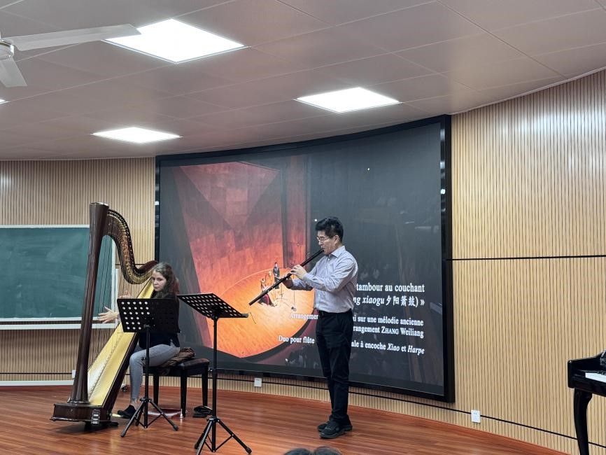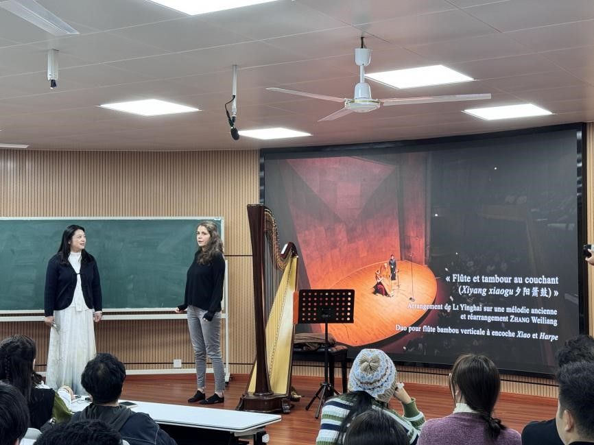 最后,张教授与Celine GOUDOUR为我们带来精彩的合奏,重现了巴黎笛箫与竖琴音乐会的视听盛宴,让现场的每一位听众都沉浸其中,感受音乐的美。