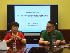 6月12日上午,湖南师范大学音乐学院2018-2019学年国际音乐奥林匹克竞赛总结会在德乐楼2楼会议室召开,我院党委书记罗嵘、副院长匡君、中外办主任陈果、中外办副主任杨琦、中外办公室成员和全体参赛老师及同学参与会议。会议开始,党委书记罗嵘祝贺同学们在竞赛中取得佳绩,并表达了对同学们不断进取、再创佳绩的殷切期盼。随后,中外办主任陈果主持召开总结会,老师们和同学们纷纷发表感言、总结经验、畅谈收获。同学们表示,赴俄参赛是一个非常好的锻炼机会,它不仅可以提升大家的艺术实践能力,而且能让大家领略俄罗斯严谨的音乐风格,感受俄罗斯人对艺术的热爱和敬畏,收获团队凝聚力和国际友谊!