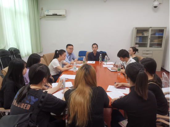 2019年湖南师范大学音乐学院学生赴俄罗斯下诺夫哥罗德国立格林卡音乐学院交流学习行前会在音乐学院德约楼312举行。国际交流合作处交流科邹秉铎、音乐学院副院长匡君、中外办主任陈果、中外办副主任杨琦和中外办公室成员出席行前会,为7名即将赴俄罗斯学习的学生践行。