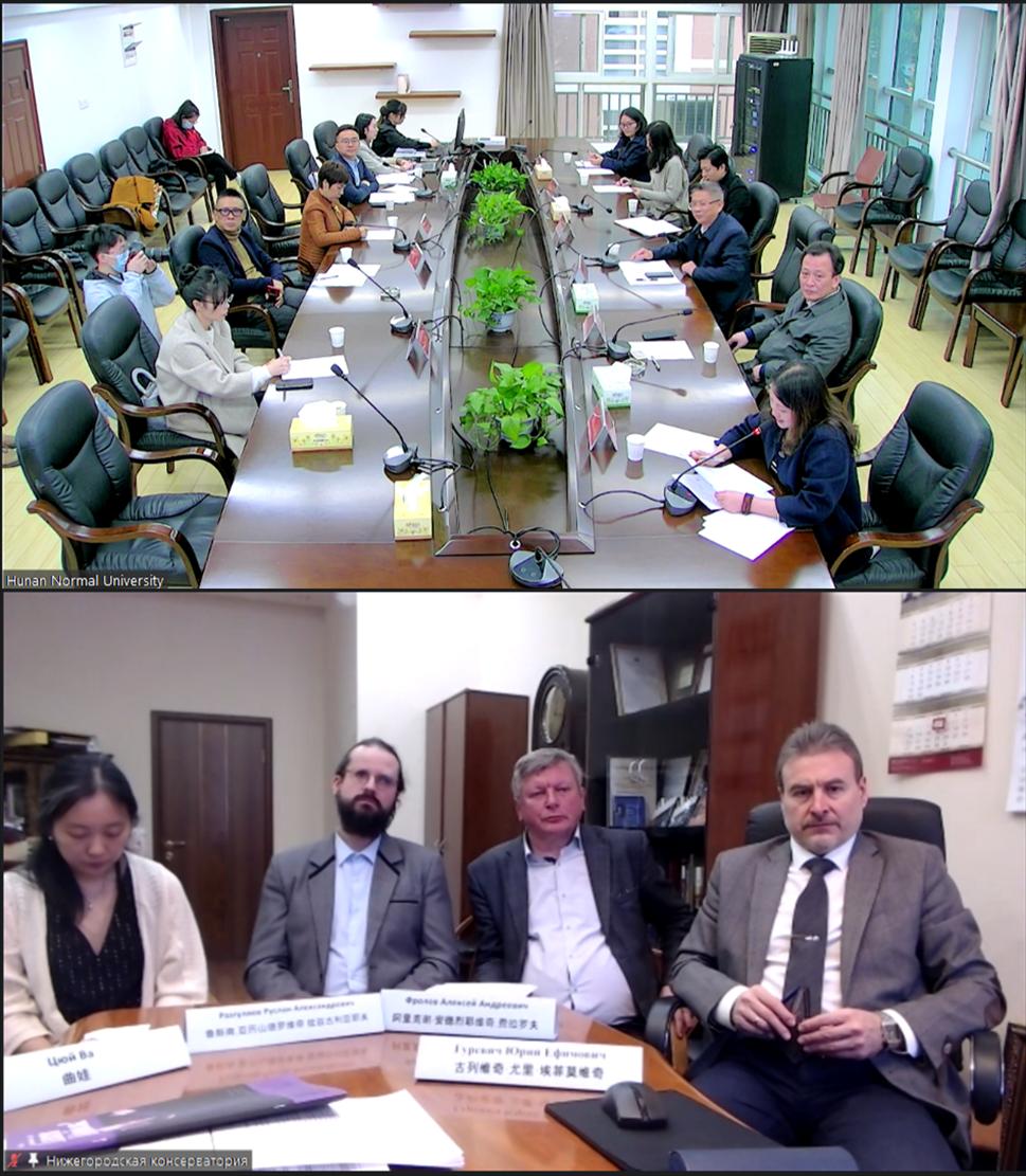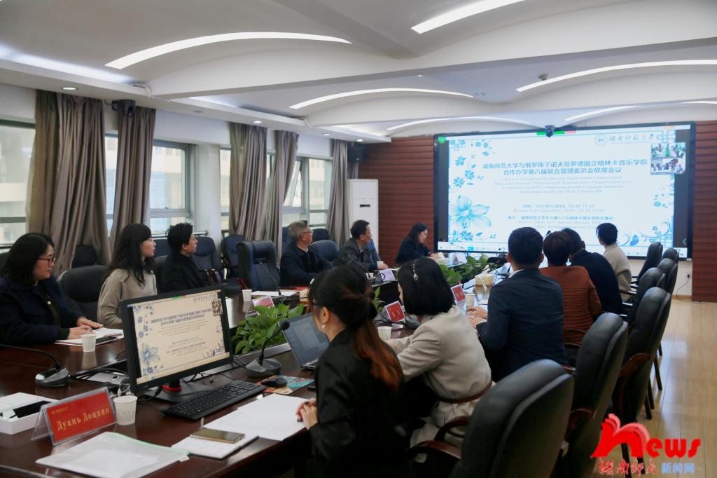 (通讯员 杨婉娴 王洪霞 罗金吟)12月9日,湖南师范大学与俄罗斯下诺夫哥罗德国立格林卡音乐学院召开中外合作办学项目第六届联合管理委员会联席会议,会议以网络视频会议形式举行,出席会议有湖南师范大学副校长唐贤清、国际交流合作处处长陈云江、国际合作办学中心主任周柯、音乐学院院长廖勇、党委书记罗嵘、中外合作办学项目主任陈果、副主任杨琦,以及格林卡音乐学院院长古列维奇、外事处主任弗拉诺夫及教师代表。
