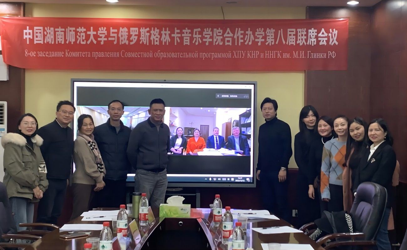 (通讯员 赵敏)12月12日,湖南师范大学与俄罗斯下诺夫哥罗德国立格林卡音乐学院召开中外合作办学项目第八届联合管理委员会联席会议,会议以网络视频会议形式举行,出席会议有湖南师范大学音乐学院院长廖勇、党委书记王铁钢、副院长资利萍、中外合作办学项目主任陈果、副主任杨琦,国际交流合作处国际合作办学指导服务中心主任周柯、秘书易映景,格林卡音乐学院院长古列维奇、外事处主任费拉罗夫、副校长乌里扬诺娃、副教授曲娃。