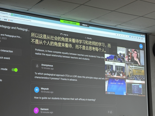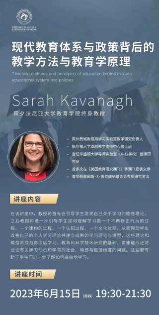 615日晚7:30在和乐楼202教室,宾夕法尼亚大学教育学院终身教授Sarah Kavanagh以“现代教育体系与政策背后的教学方法与教育学原理”为主题向以2020级和2021级音乐学(师范)专业为主的同学和相关教师们召开国际前沿跨学科系列首场课程讲座。Sarah教授将与学习相关的理论、来自个人文化背景的但似乎从未被我们表述出来的隐性的见解进行剖析,并分享自身作为学习者的学习经验。在该讲座中,教授首先引导同学们发现自己关于学习的隐性理论,进一步引导大家理解学习是一个不断修正行为的过程、一个建构的过程、一个认知过程、一个文化过程,从而帮助学生改善个人学习理论并建立成熟的学习理论与模型,这些理论和模型亦会成为学习者今后学习、教育和科学技术研究的基础。讲座最后谈论有关学习动机和学习的社会、情感与道德维度的问题,对学生们进一步了解如何高效地学习十分有助。通过提问解答和经验分享Sarah教授实时与同学们进行交流沟通,参与此次课程讲座的师生受益匪浅。